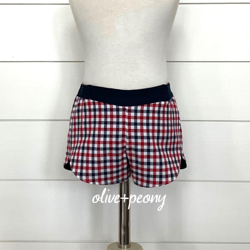 Our red, white, and navy gingham plaid shorts are such a classic piece for summer! What’s even better?? They are reversible! The plaid side features a navy elastic waistband, while the navy underside has the plaid at the waist. (You’ll want to remove our required care tag with a seam ripper before wearing in reverse.)